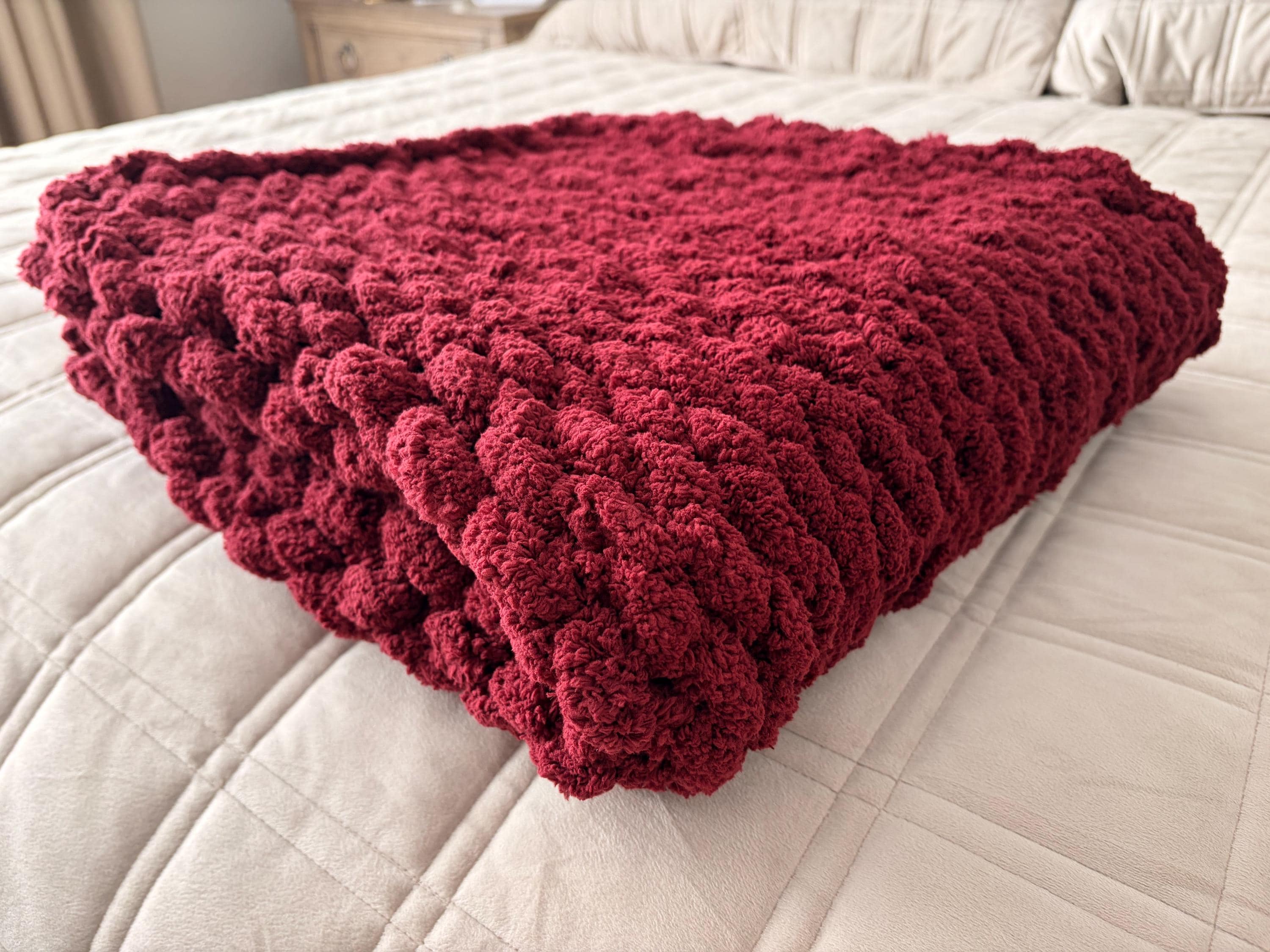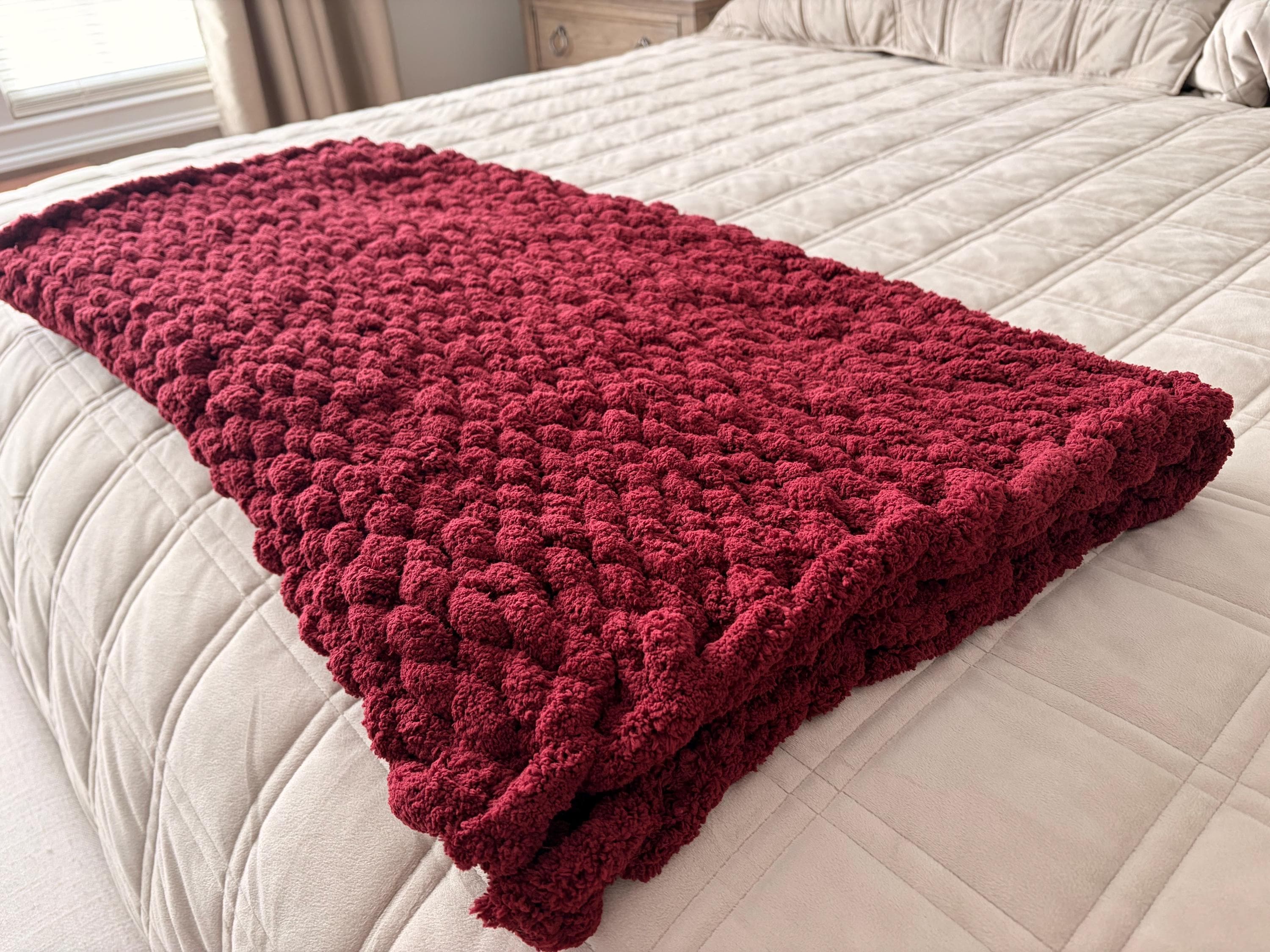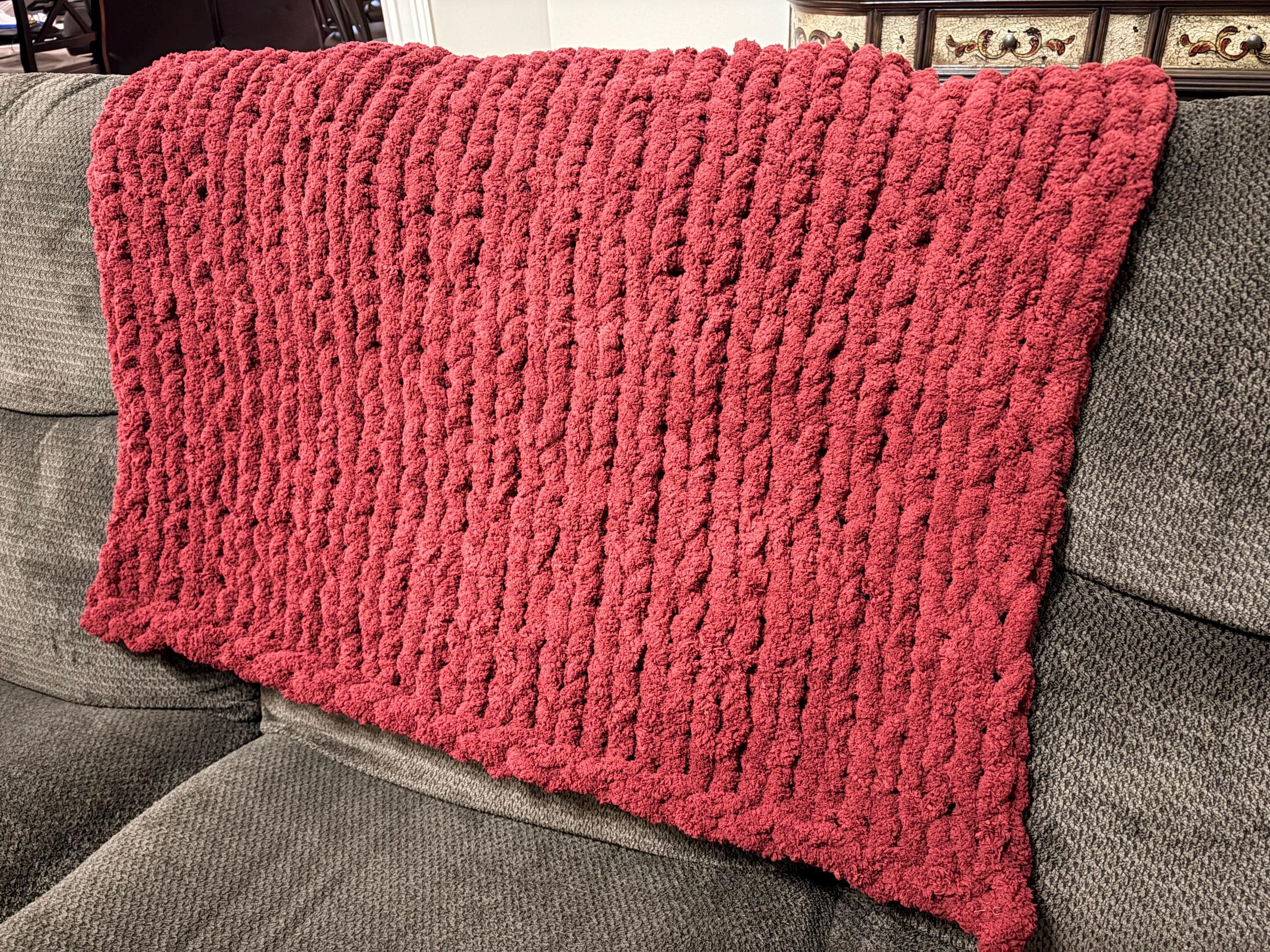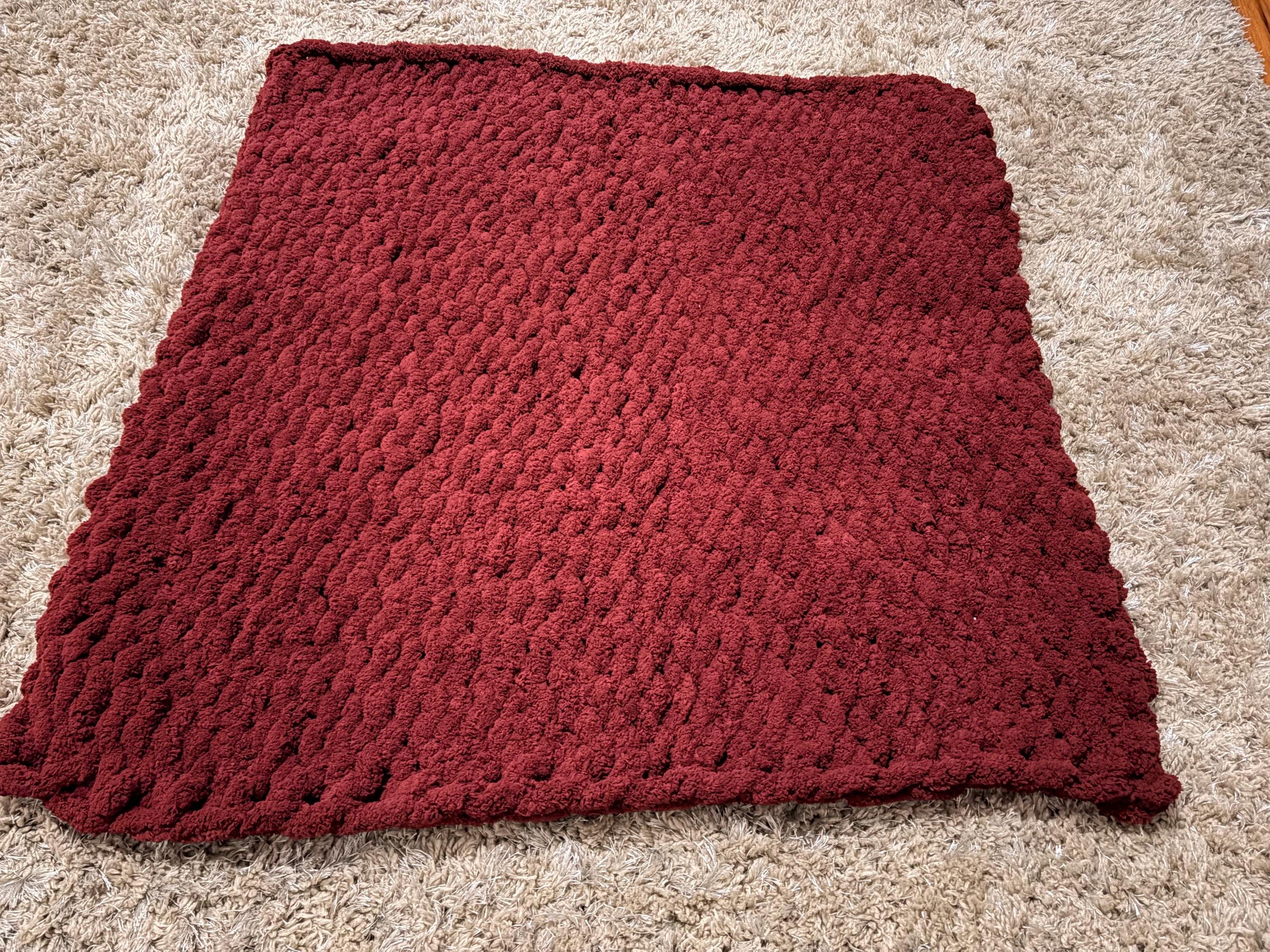 Handmade Chunky Knit Baby Blanket, Wine Chenille Yarn, Nursery Throw