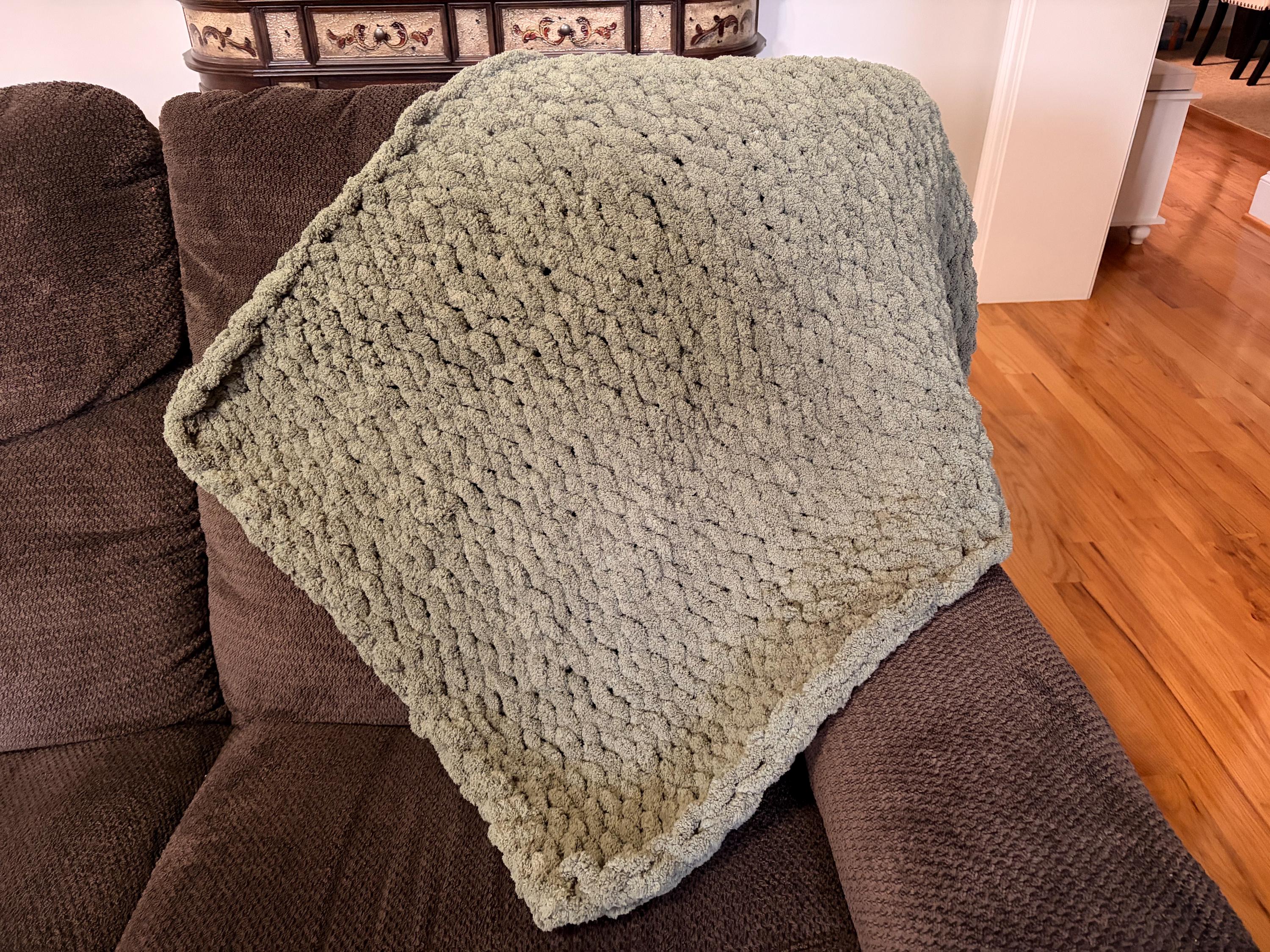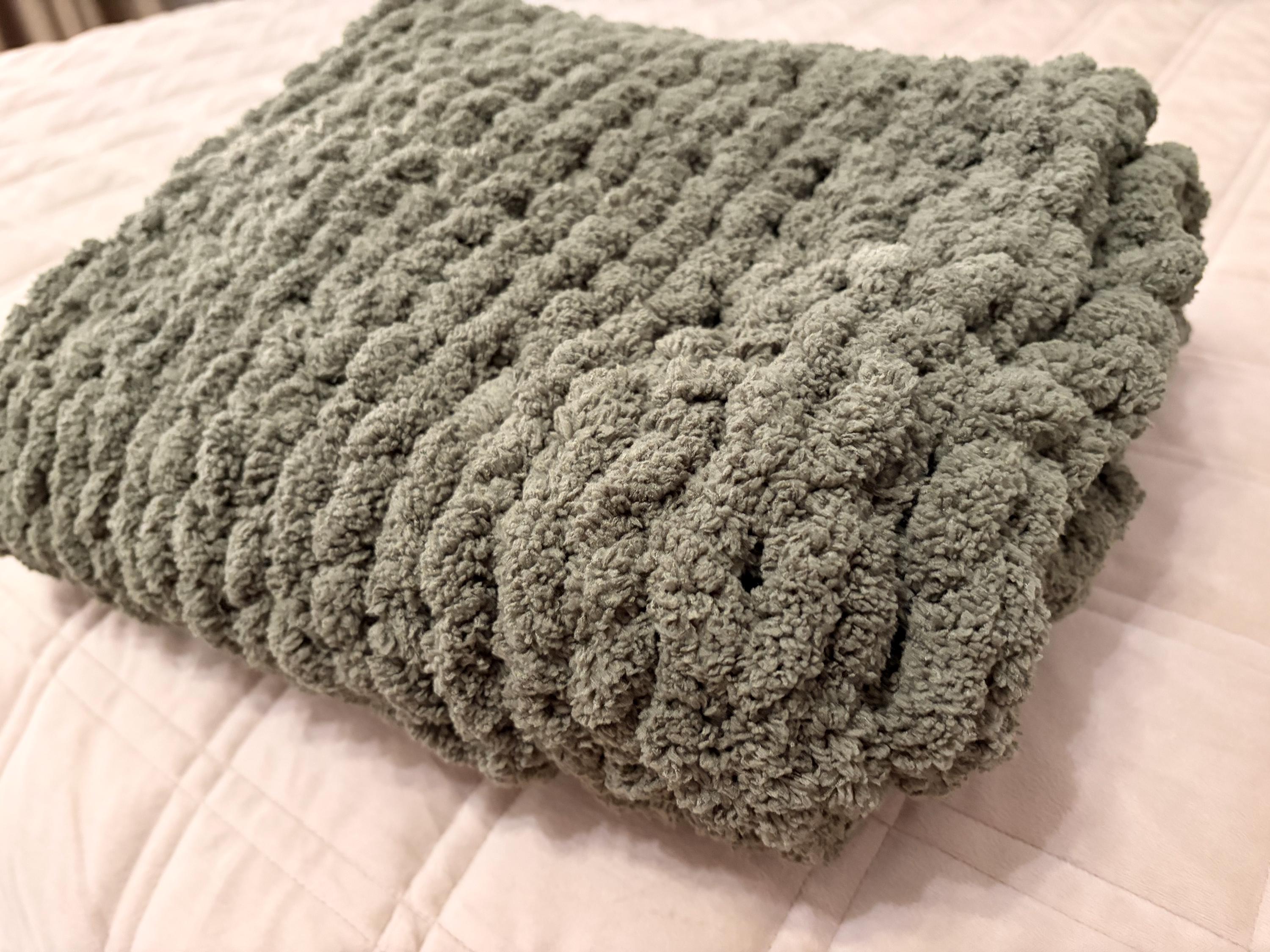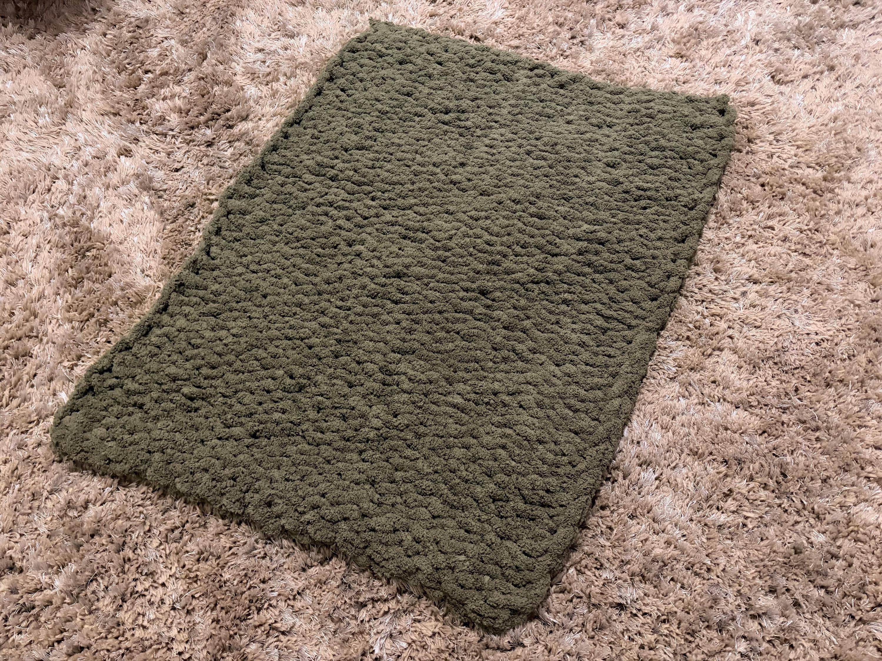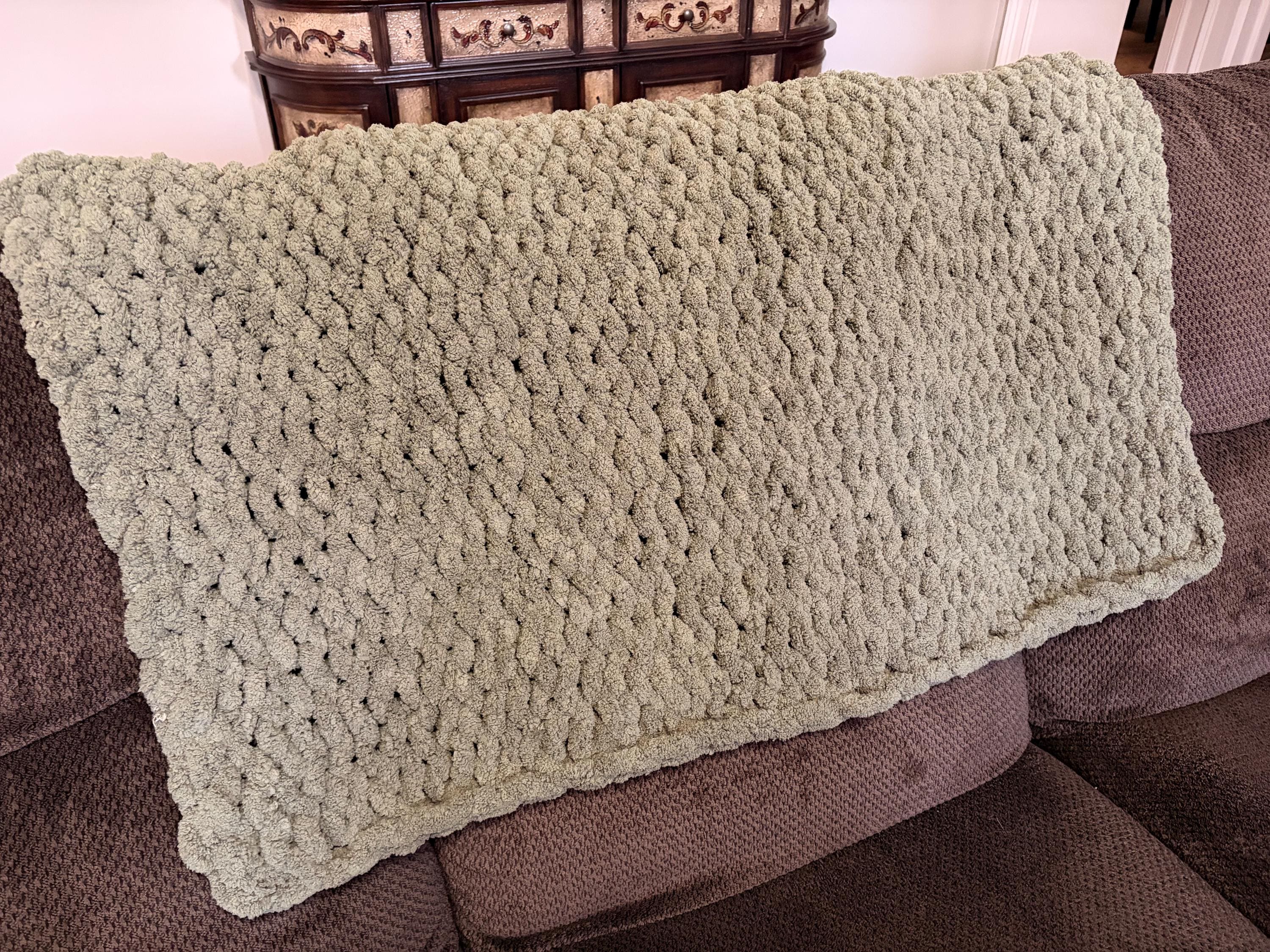 Handmade Olive Chunky Knit Baby Blanket, Chenille Yarn, Nursery Throw
