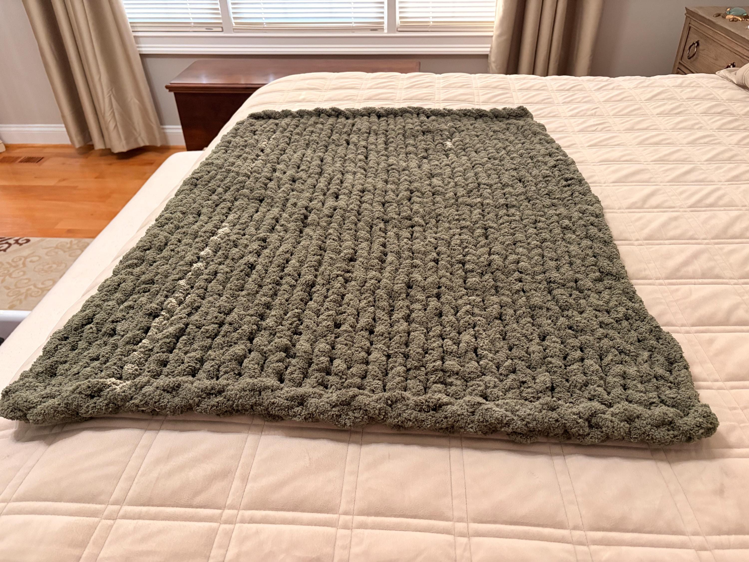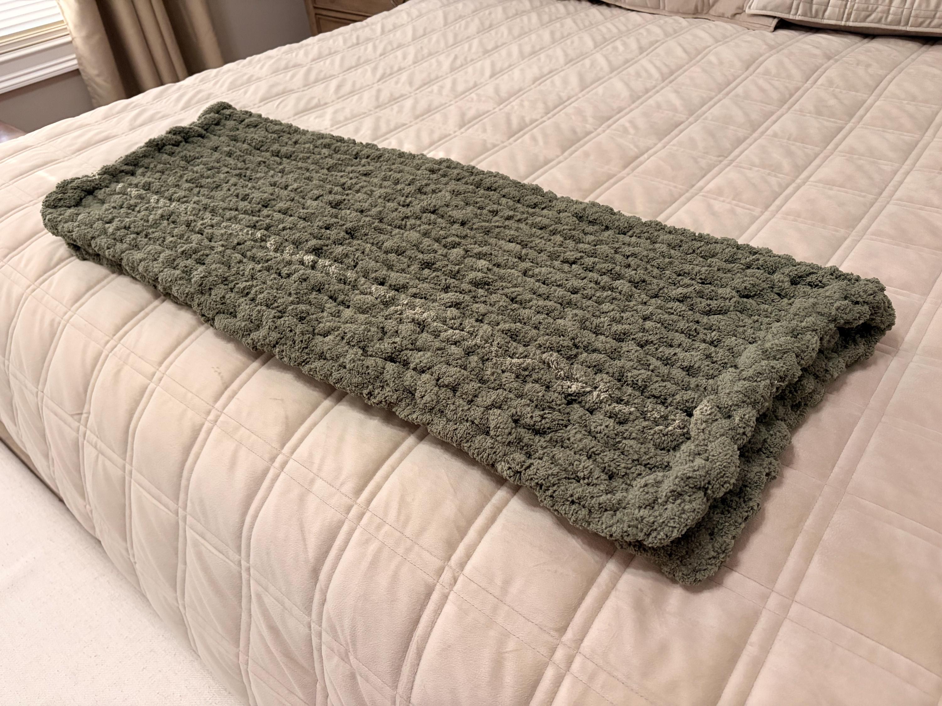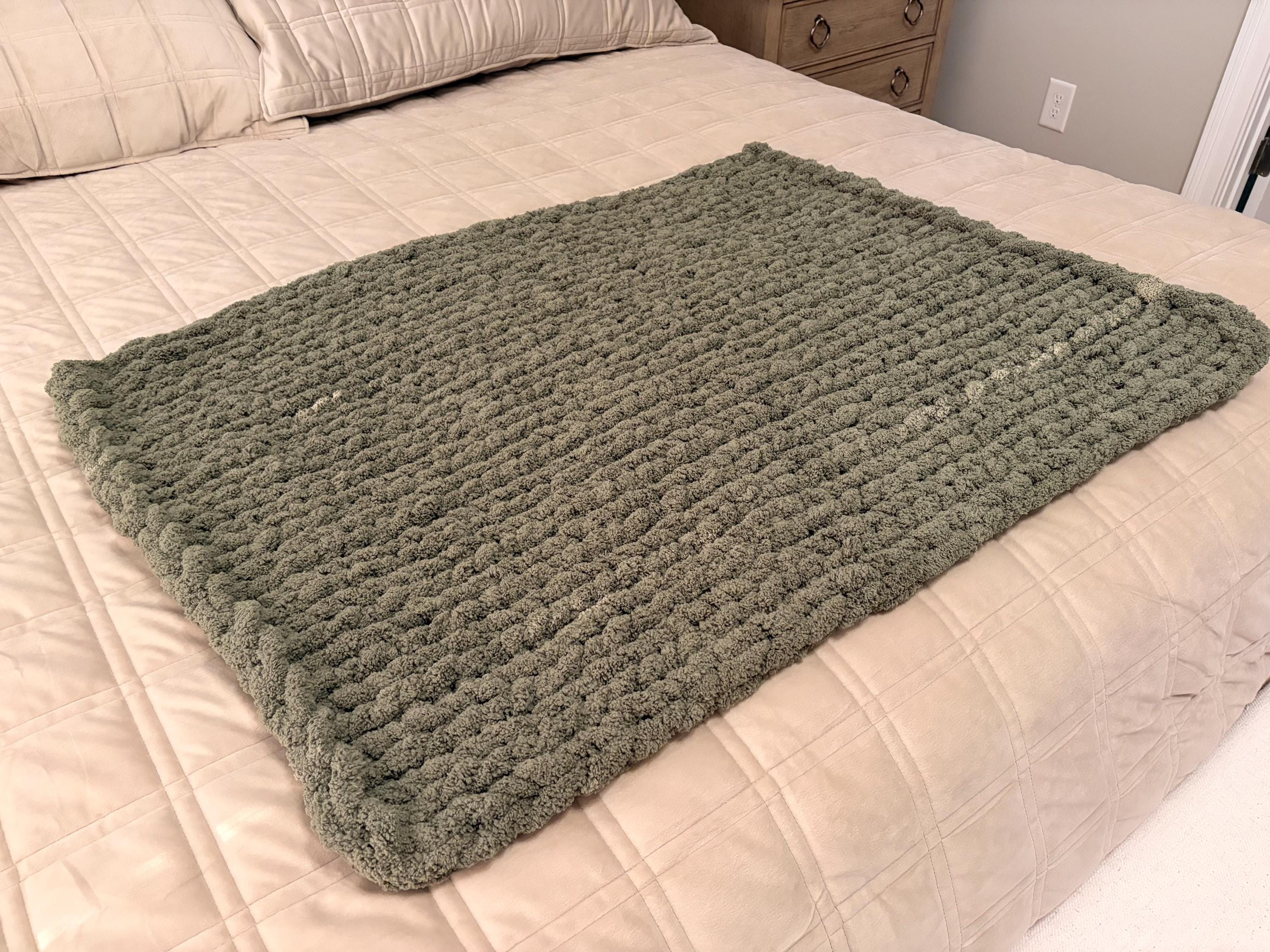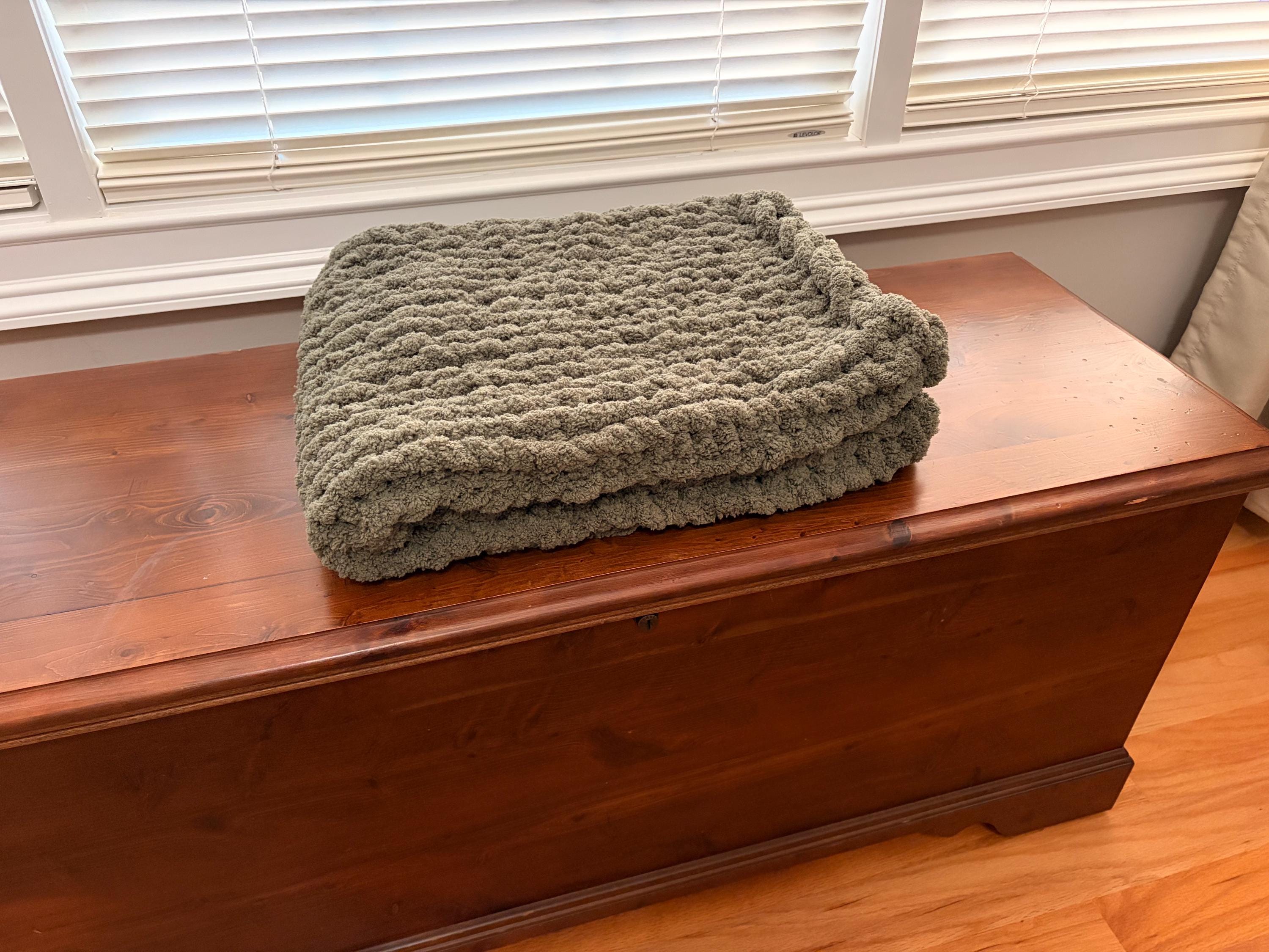 Handmade Olive Chunky Knit Baby Blanket, Chenille Yarn, Nursery Throw