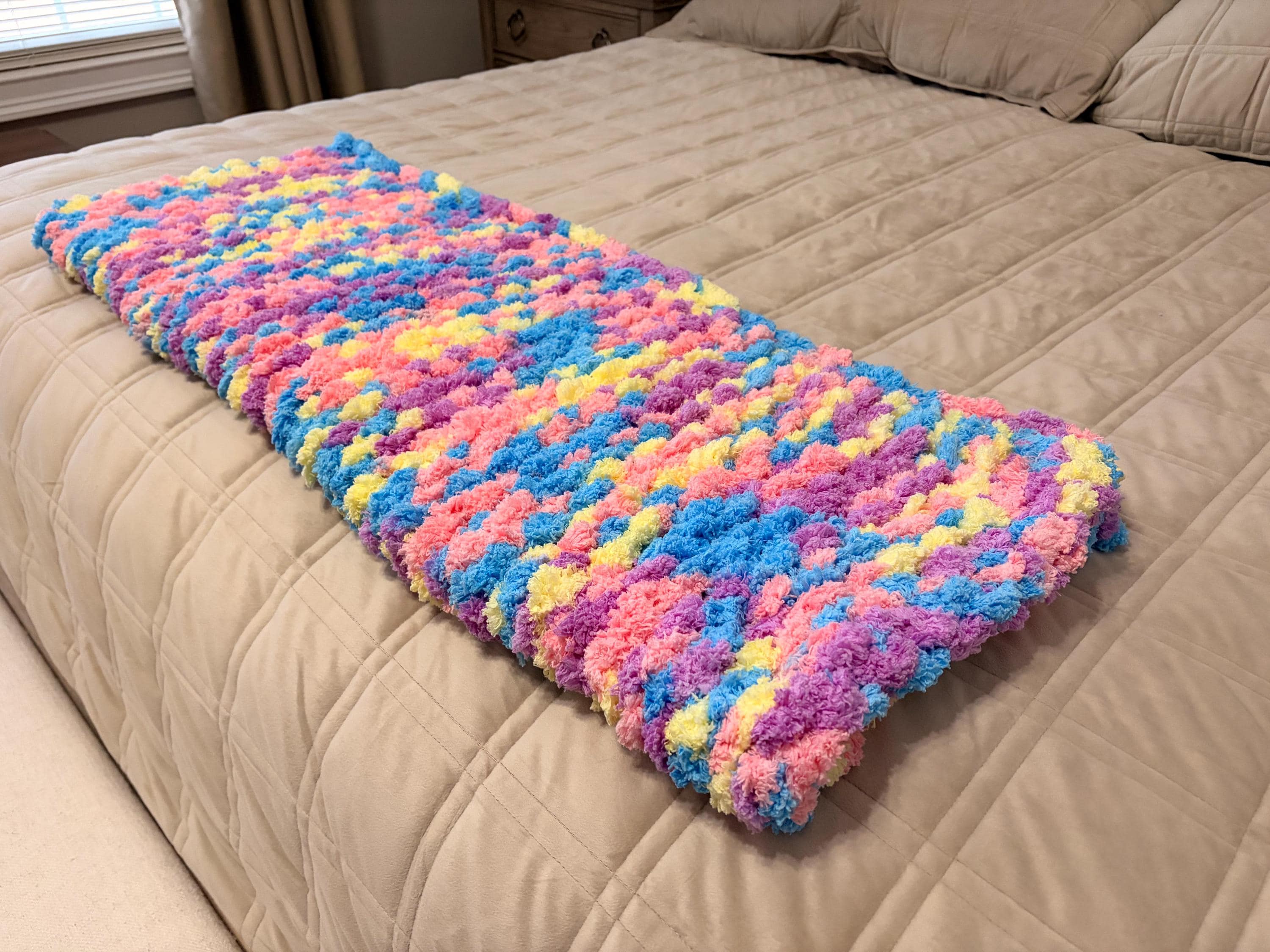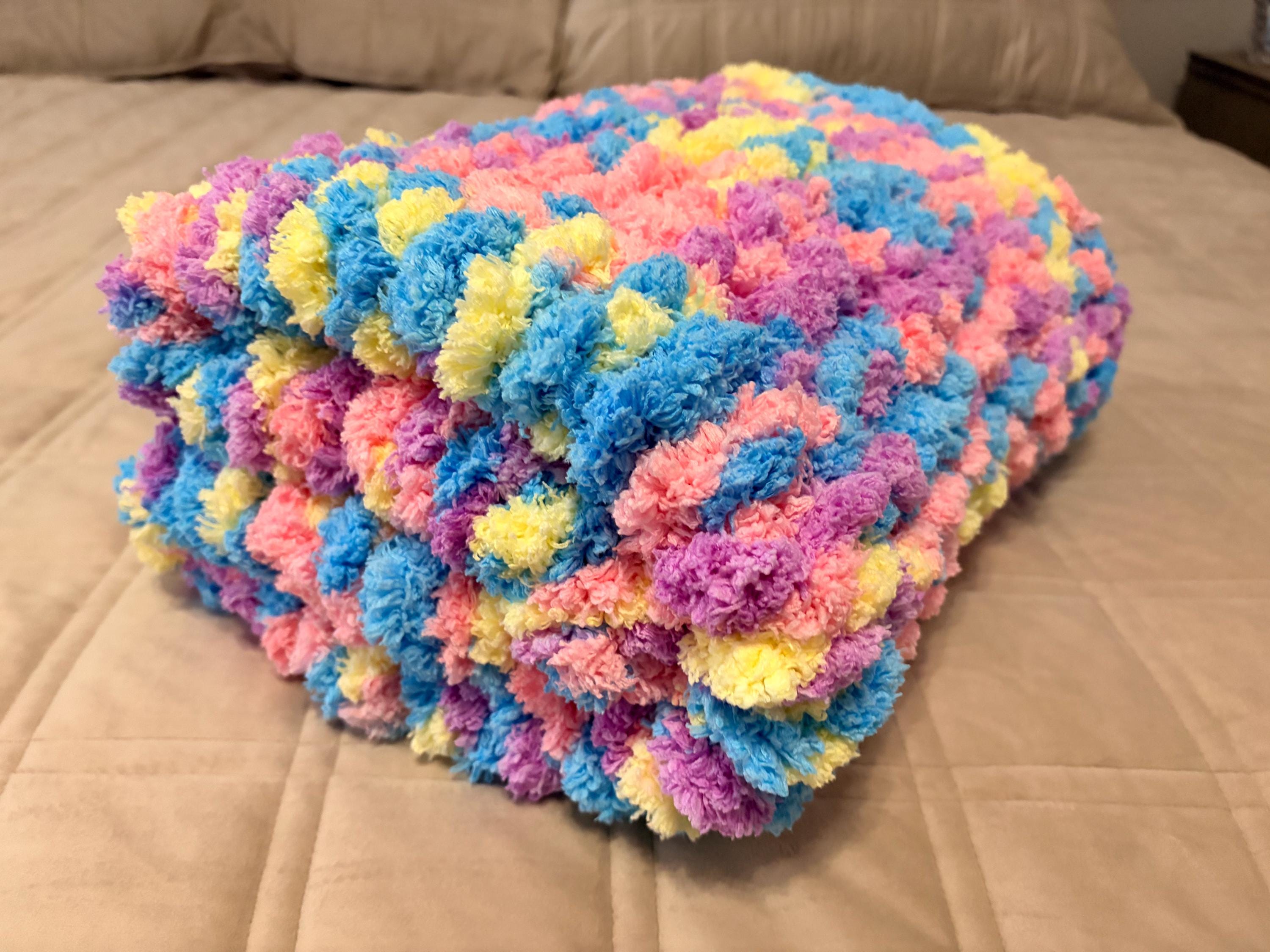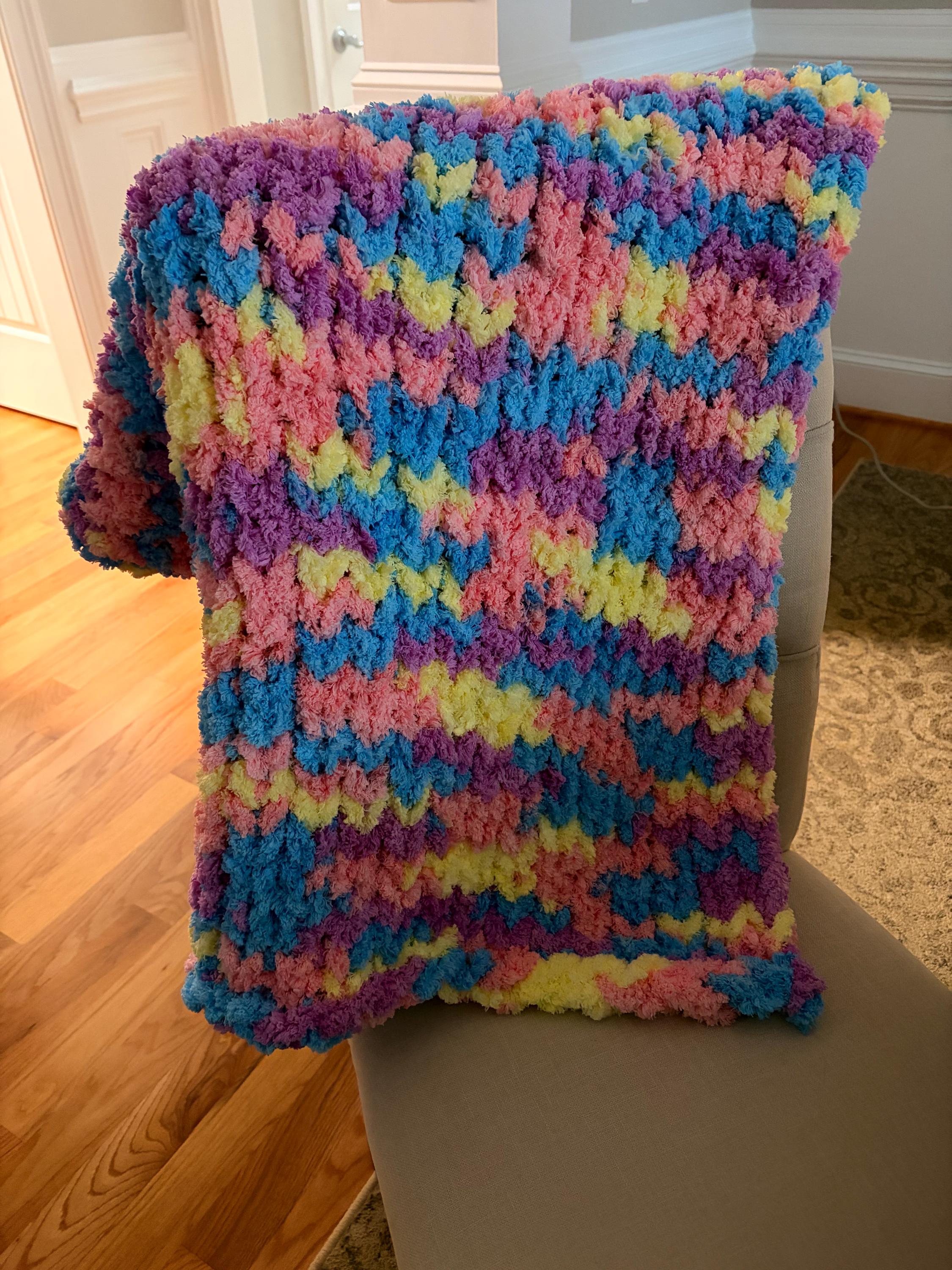 Chunky Knit Easter Baby Blanket, Pink Multicolor Chenille Yarn, Nursery Throw