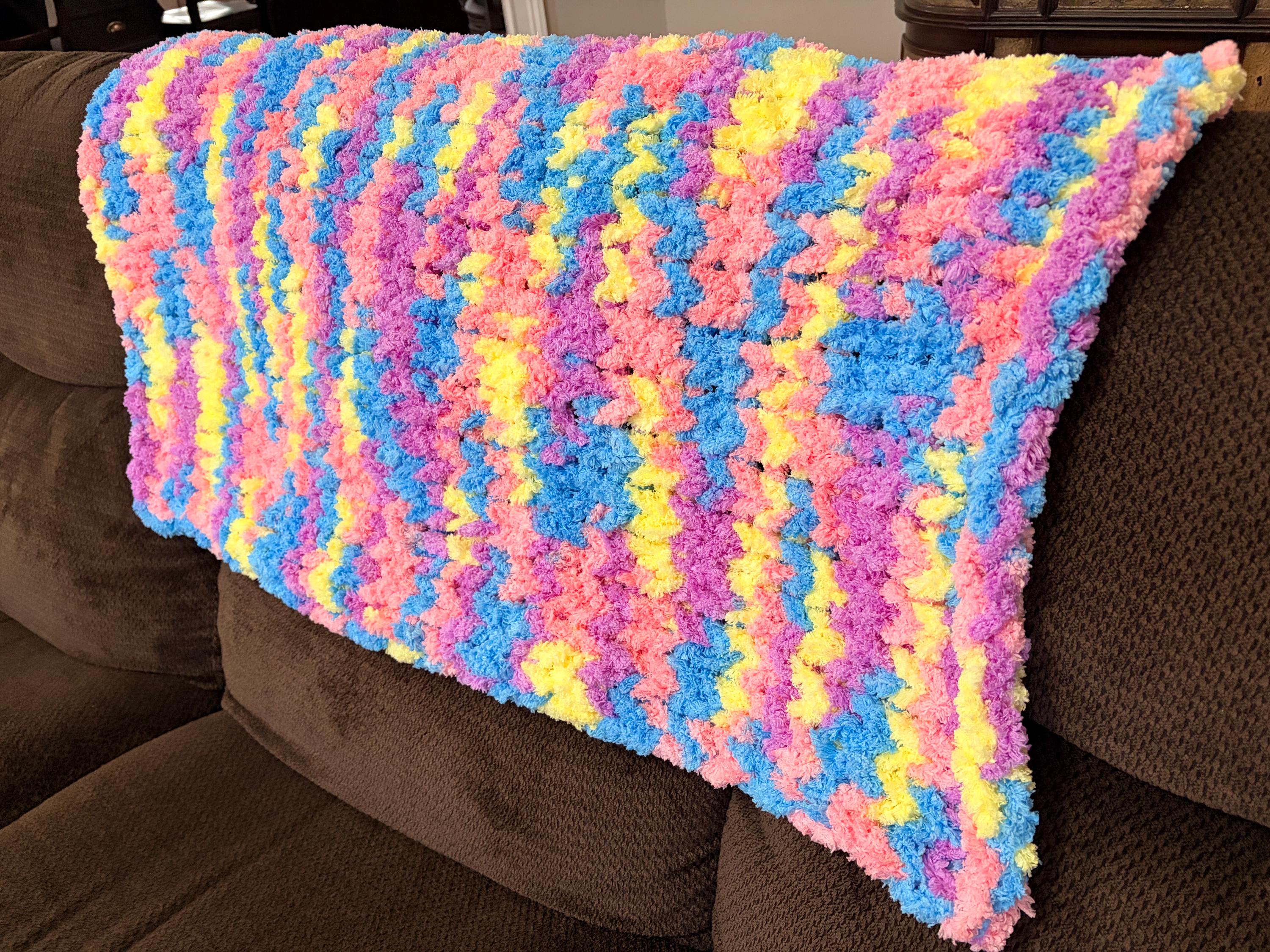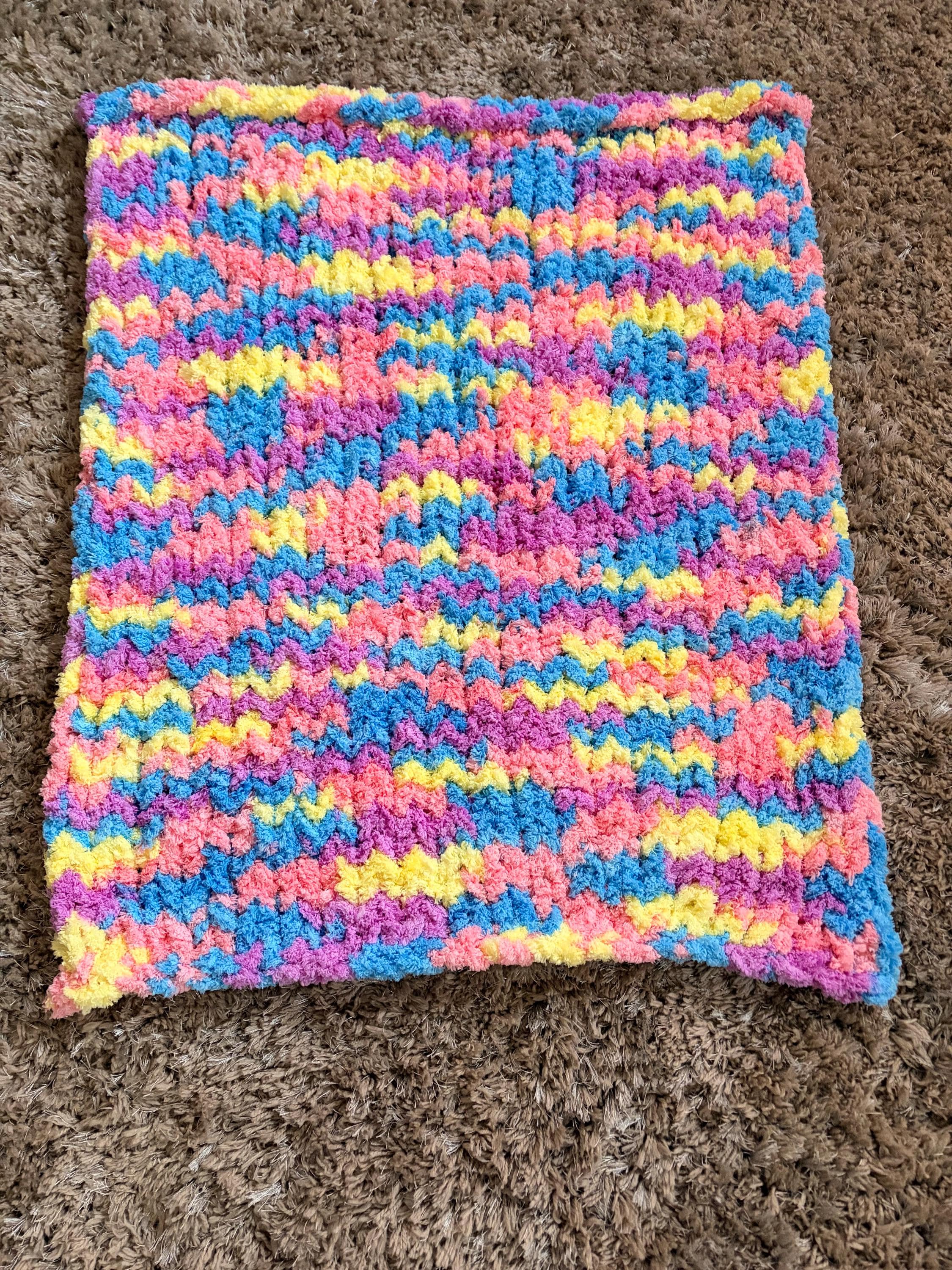 Multicolored baby blanket, plush, perfect for first photos! Works great as a lap blanket and pet blanket too!