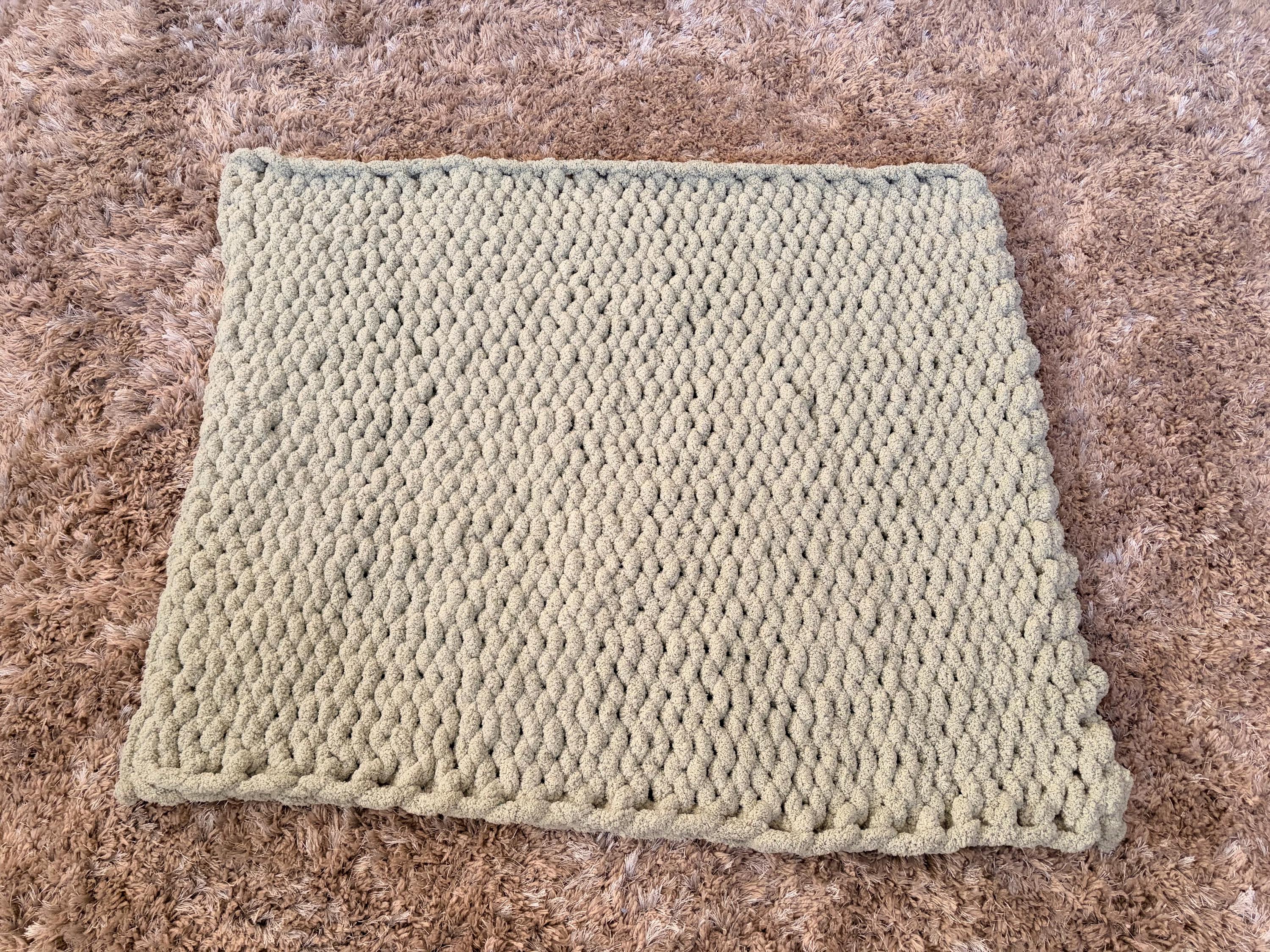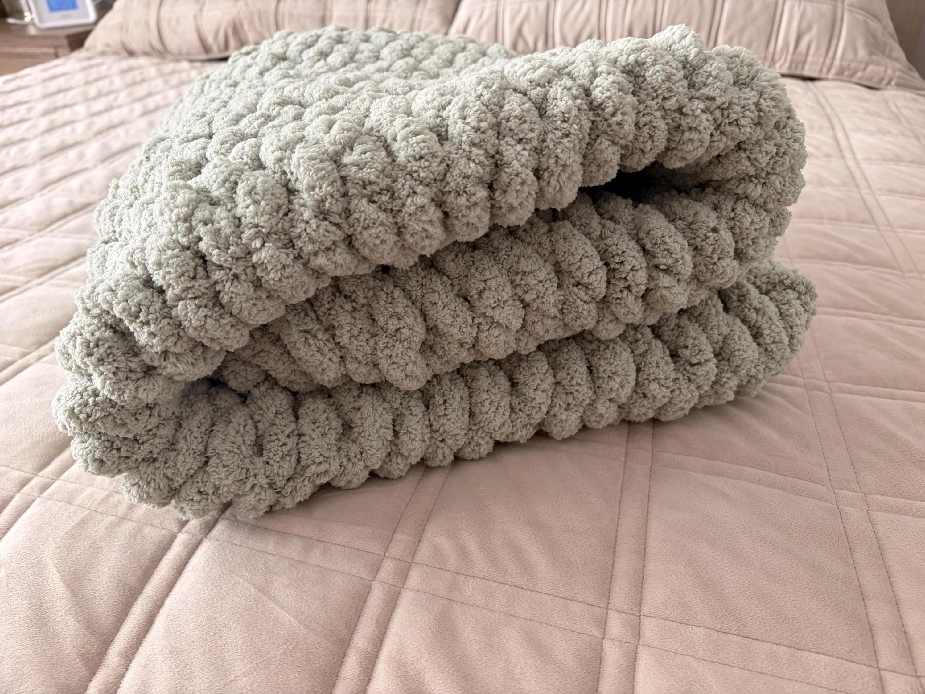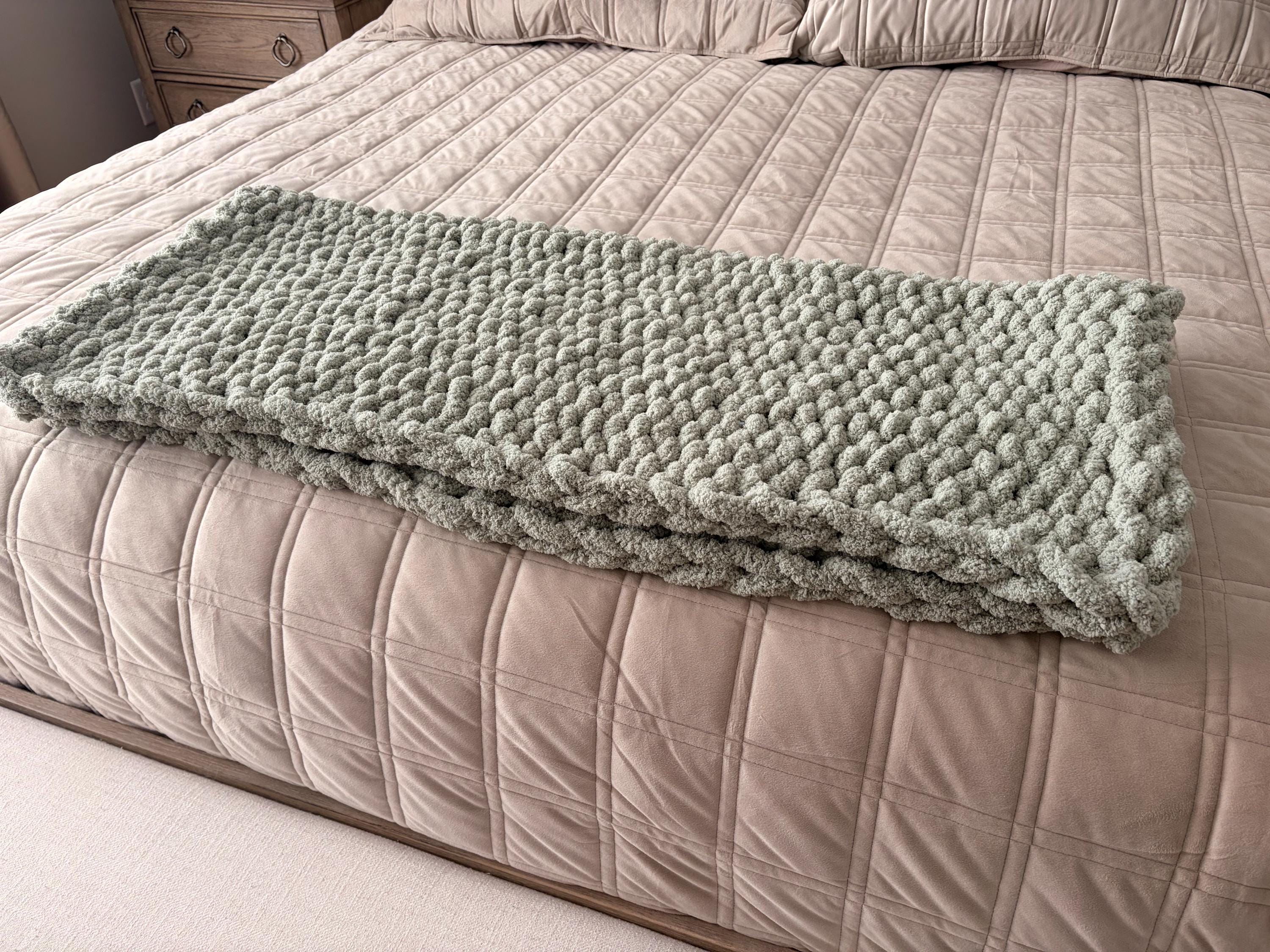 Handmade Sage Green Chunky Knit Baby Blanket, Chenille Yarn, Nursery Throw