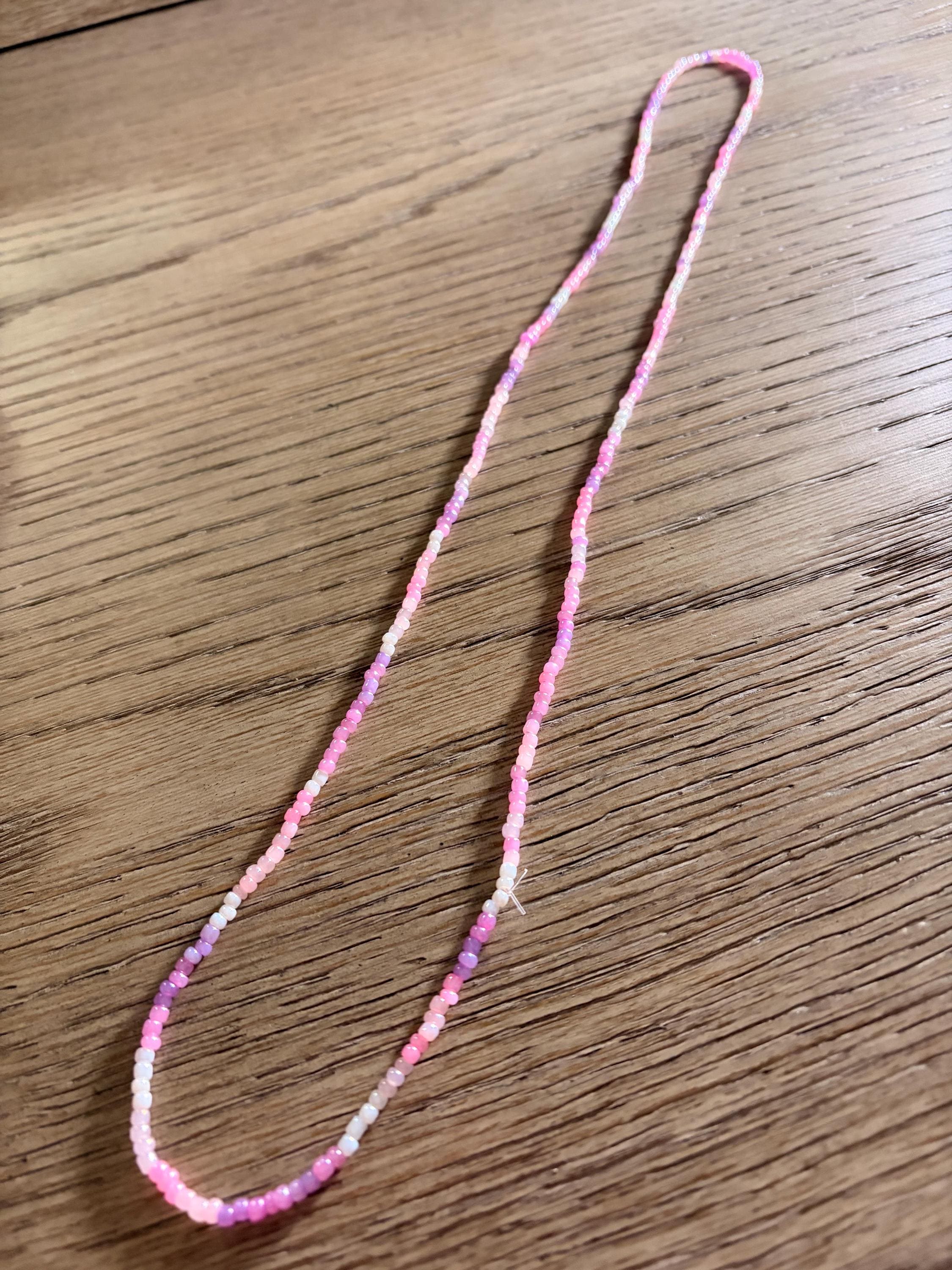 Handmade Pink Glass Beaded Necklace