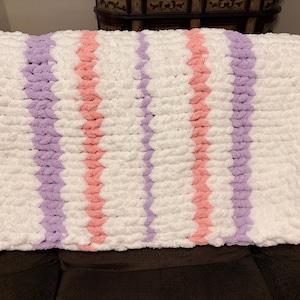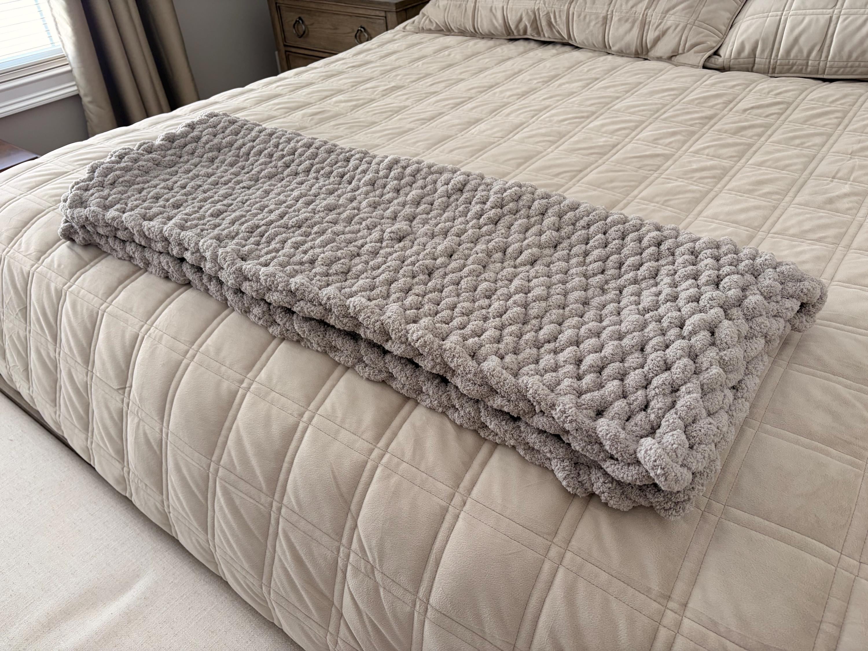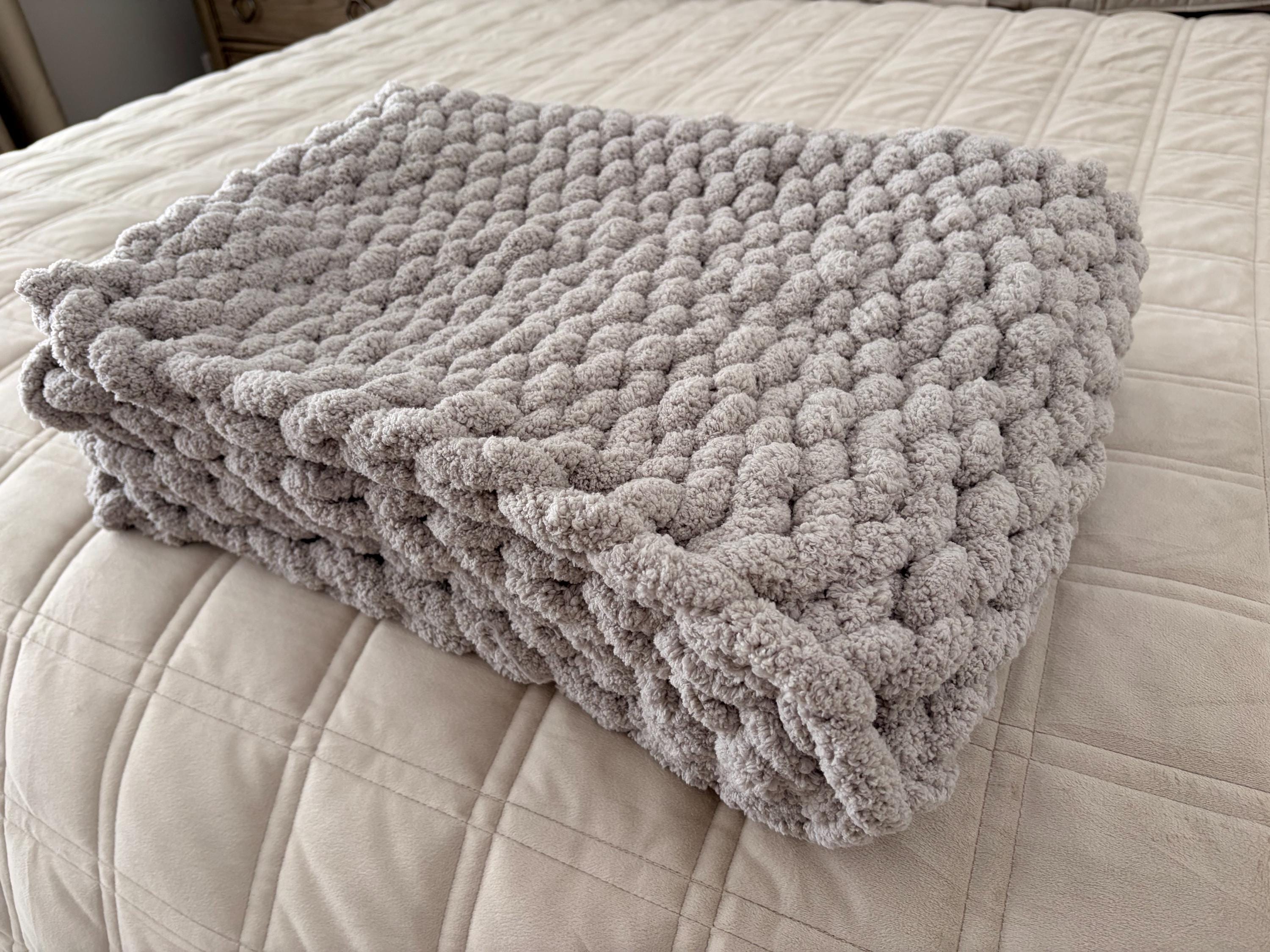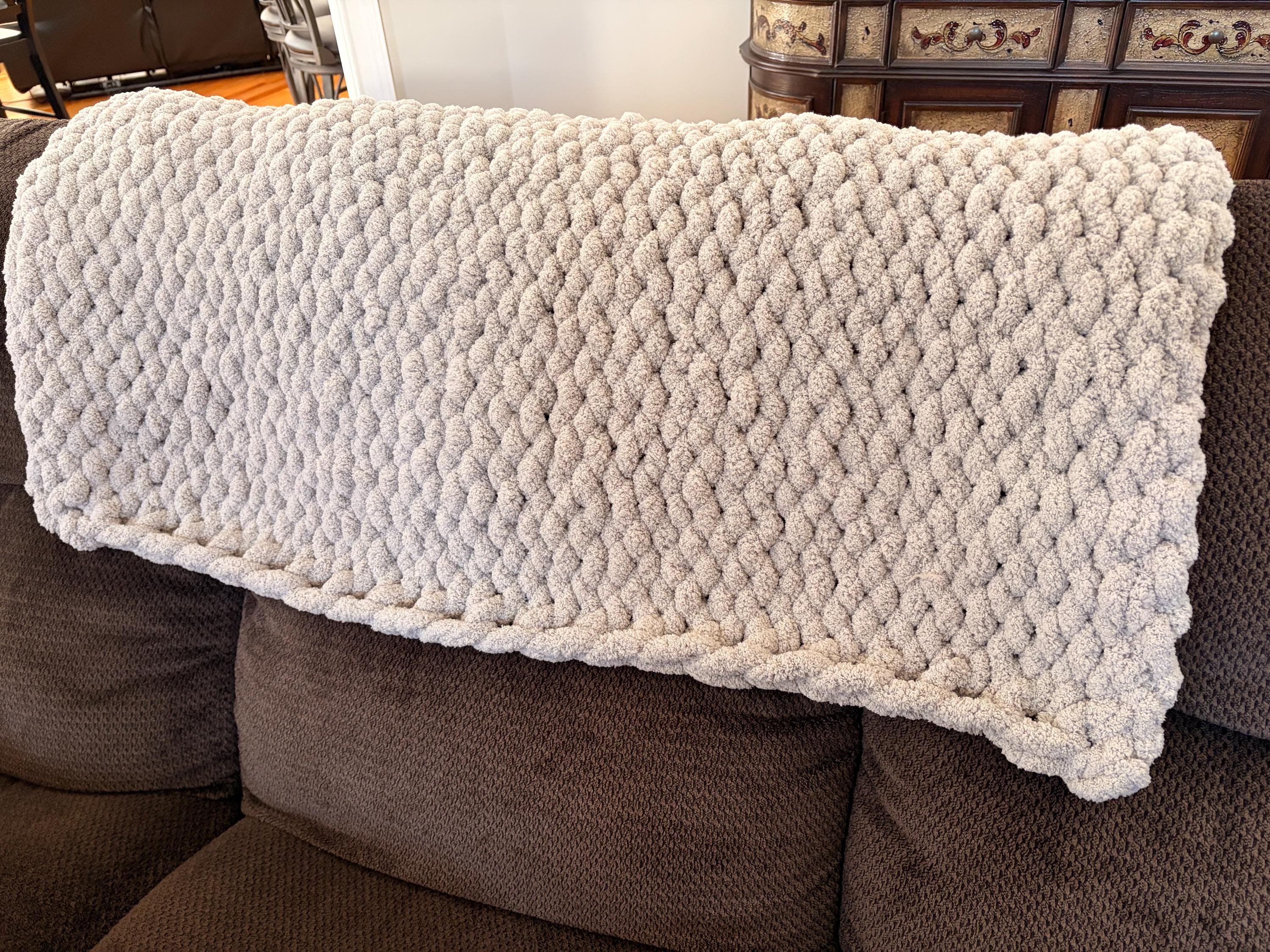 Handmade Chunky Knit Gray Baby Blanket, Chenille Yarn, Nursery Throw